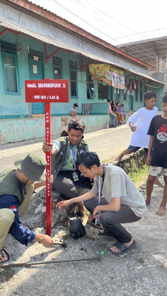 Mahasiswa Kuliah Kerja Nyata (KKN) Universitas Lampung (Unila) melaksanakan program pembuatan dan pemasangan plang jalan di Kelurahan Kaliawi Persada, Kecamatan Tanjung Karang Pusat, Kota Bandar Lampung. Kegiatan ini merupakan salah satu bentuk kontribusi mahasiswa dalam membantu masyarakat memperoleh akses informasi yang lebih jelas terkait tata letak jalan dan lingkungan sekitar.
