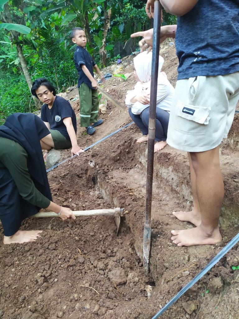 Pencangkulan dilakukan langsung oleh para mahasiswa KKN. Dengan penuh semangat, mereka membersihkan area, mencangkul, dan menata lahan agar siap ditanami berbagai jenis tanaman obat tradisional seperti jahe, kunyit, dan serai.