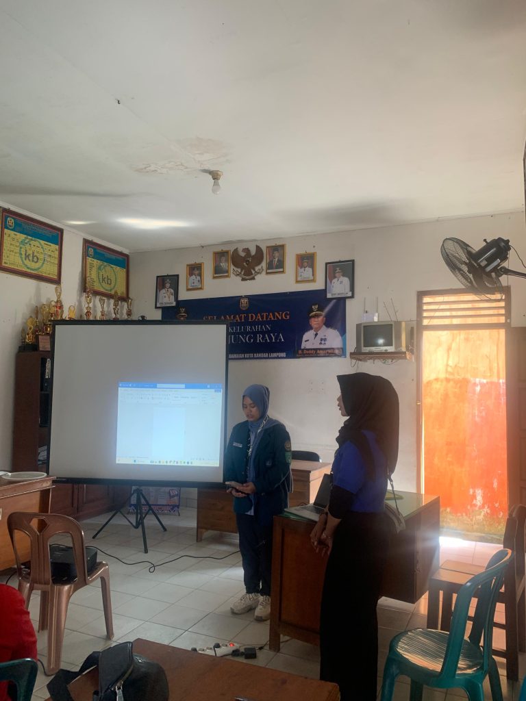 Bandar Lampung – Mahasiswa Kuliah Kerja Nyata (KKN) Universitas Lampung (Unila) di Kelurahan Tanjung Raya melaksanakan serangkaian kegiatan pengabdian masyarakat, Jumat (15/08/2025). Kegiatan diawali dengan Jumat Bersih (Jumsih), dilanjutkan pelatihan Microsoft Office, serta penempelan poster edukasi rumus-rumus matematika di beberapa titik strategis.