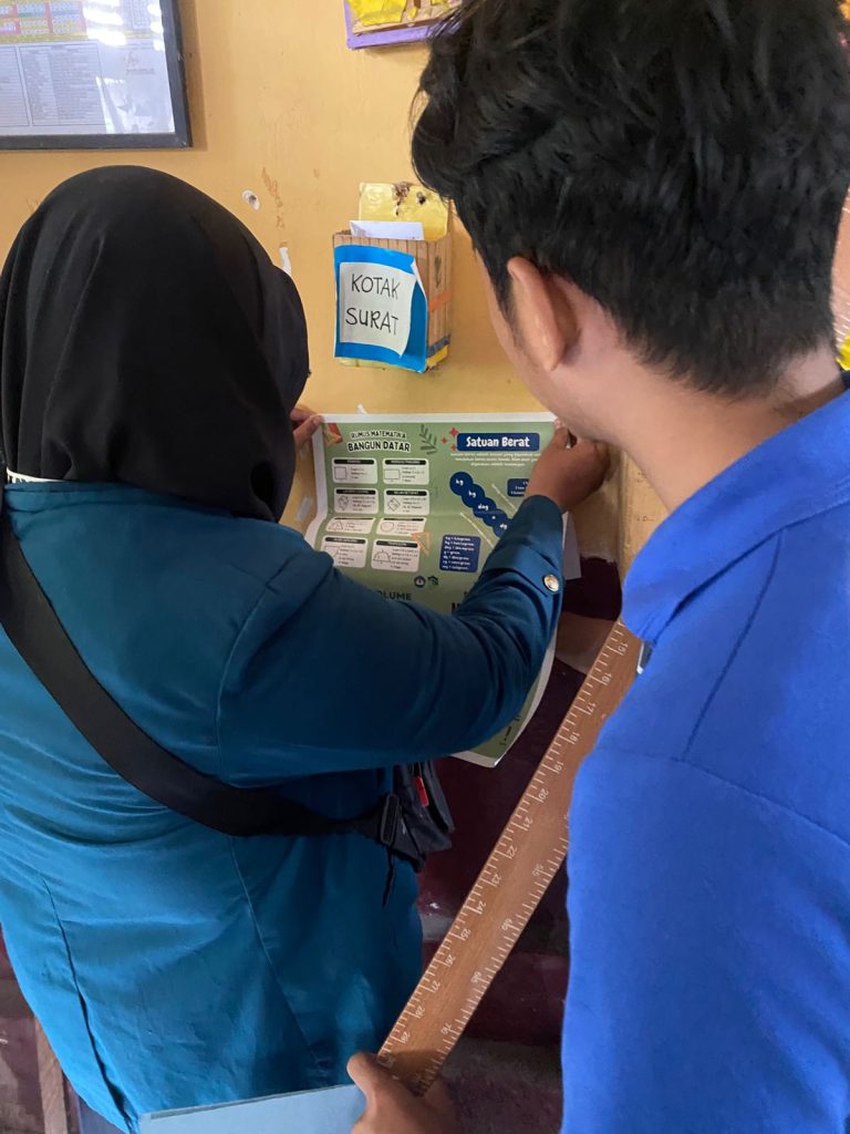 Kegiatan ditutup dengan penempelan poster berisi rumus-rumus matematika di area belajar seperti sekolah, rumah belajar, dan tempat umum yang mudah dijangkau pelajar. Poster ini diharapkan membantu siswa mengingat rumus-rumus penting dalam mata pelajaran matematika dengan cara yang sederhana dan praktis.