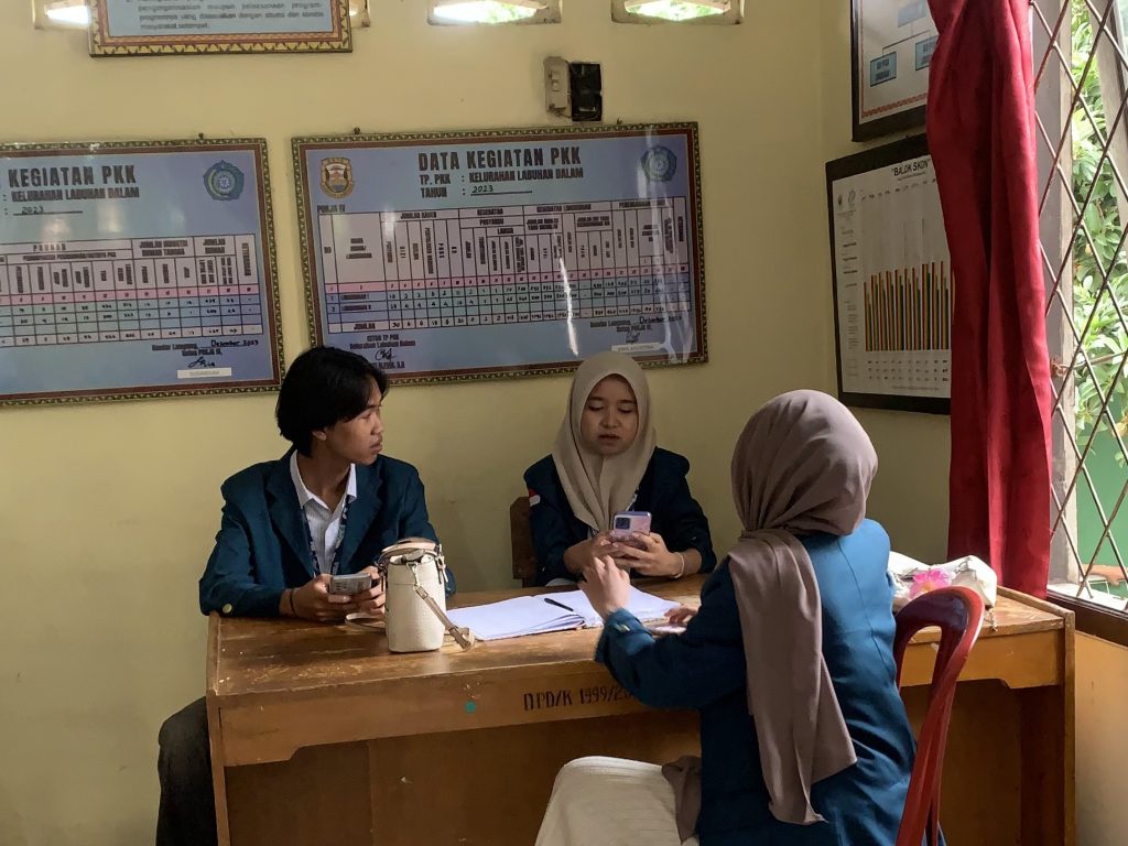 Pada pagi hari, sejumlah mahasiswa turut membantu kegiatan pelayanan masyarakat di kantor kelurahan. Ini menjadi kesempatan bagi mahasiswa untuk memahami proses pelayanan publik secara langsung, sekaligus mempererat hubungan dengan perangkat kelurahan dan warga yang datang.