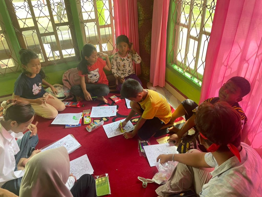 Selama kegiatan berlangsung, mahasiswa turut mendampingi dan memberikan arahan ringan agar peserta mampu menyelesaikan karya gambar sesuai kemampuan masing-masing. Selain itu, mahasiswa juga memberikan motivasi untuk menumbuhkan rasa percaya diri dan keberanian anak-anak dalam mengekspresikan ide mereka melalui media visual.