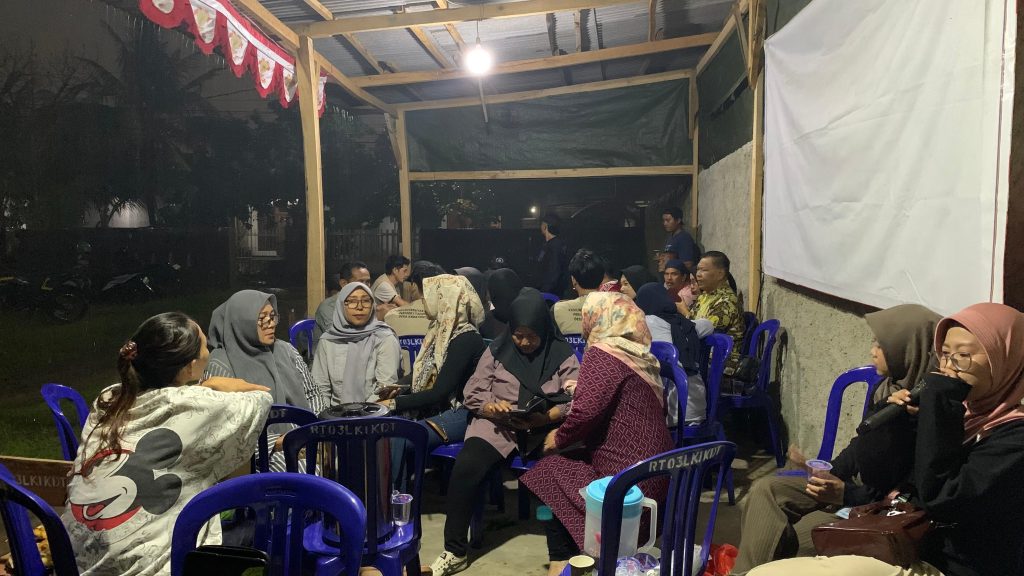 Pada malam hari pukul 19.00 WIB, mahasiswa KKN Kedaton menghadiri undangan di kediaman Ketua RT 03 Lingkungan 1. Kegiatan tersebut dihadiri oleh Bapak Lurah Kedaton, Ibu Ketua Lingkungan 1, serta para Ketua RT dan warga Lingkungan 1. Pertemuan ini bertujuan untuk mempererat tali silaturahmi, memperkenalkan mahasiswa KKN kepada perangkat dan masyarakat setempat, serta menjalin kerja sama dan komunikasi yang baik guna mendukung kelancaran pelaksanaan program kerja selama masa KKN.