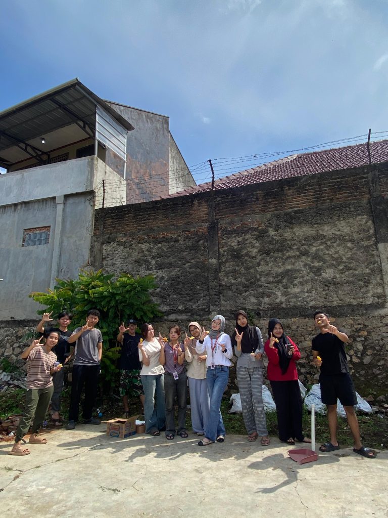 Kegiatan diawali dengan gotong royong di lapangan RT 25, tempat mahasiswa bersama Ketua RT 25 dan warga setempat melakukan pembersihan lingkungan. Kegiatan meliputi penyapuan area lapangan, pemangkasan rumput, serta pembuangan sampah agar lingkungan tetap bersih dan nyaman digunakan oleh masyarakat untuk kegiatan bersama. Gotong royong berjalan dengan lancar dan penuh semangat kebersamaan antara mahasiswa dan warga.