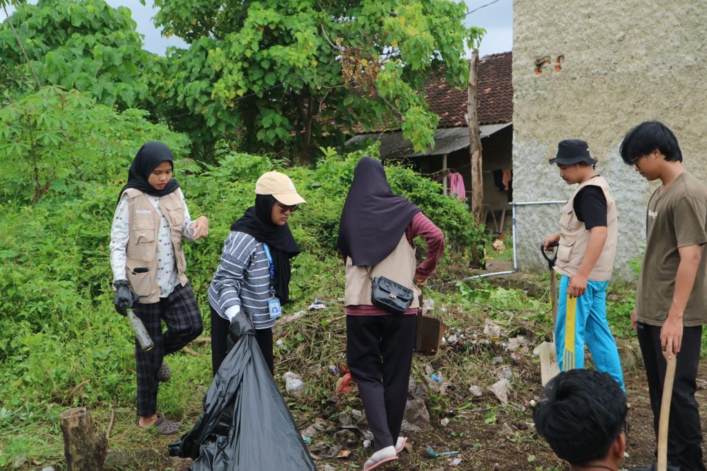Pembersihan lahan dimulai sejak pagi hari dengan melibatkan seluruh anggota kelompok KKN. Mahasiswa melakukan berbagai aktivitas, antara lain membersihkan rumput liar (ngarit), mengumpulkan sampah, membersihkan sisa-sisa material yang tidak terpakai, serta merapikan area lahan agar siap digunakan untuk kegiatan penanaman. Sampah yang terkumpul kemudian dipilah dan dibuang pada tempat yang telah disediakan.