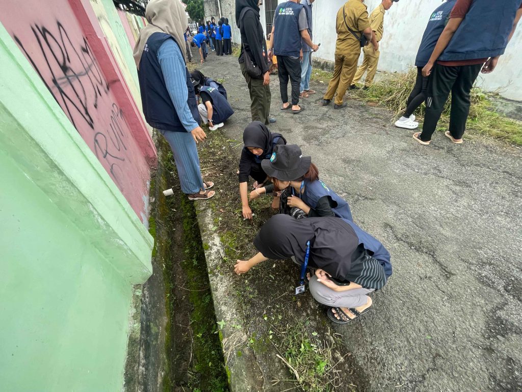 Kegiatan bersih-bersih dimulai pada pagi hari dengan melibatkan mahasiswa KKN dan warga RT 04. Area yang dibersihkan meliputi lingkungan sekitar pemukiman warga, jalan gang, serta saluran air. Mahasiswa dan warga bekerja sama membersihkan sampah, rumput liar, dan kotoran yang dapat mengganggu kebersihan serta kenyamanan lingkungan.