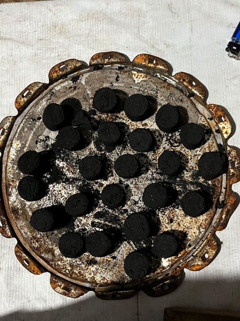 Proses pembuatan briket diawali dengan pengolahan bahan baku bonggol jagung yang telah dikumpulkan sebelumnya, mulai dari proses pembakaran awal, penghalusan bahan, pencampuran, hingga pencetakan briket. Mahasiswa KKN bekerja sama secara gotong royong dalam setiap tahapan kegiatan guna memastikan hasil briket dapat digunakan sebagai media percontohan pada saat sosialisasi kepada warga desa.