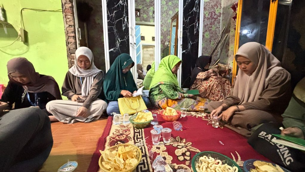 Dalam kesempatan tersebut, mahasiswa KKN menyampaikan informasi mengenai rencana pelaksanaan sosialisasi dan kegiatan pembuatan program One Product One Village, yang bertujuan untuk mendorong pemberdayaan masyarakat melalui pengembangan produk unggulan desa. Pengumuman disampaikan secara langsung kepada ibu-ibu peserta pengajian dengan harapan dapat meningkatkan partisipasi dan keterlibatan masyarakat dalam kegiatan tersebut.