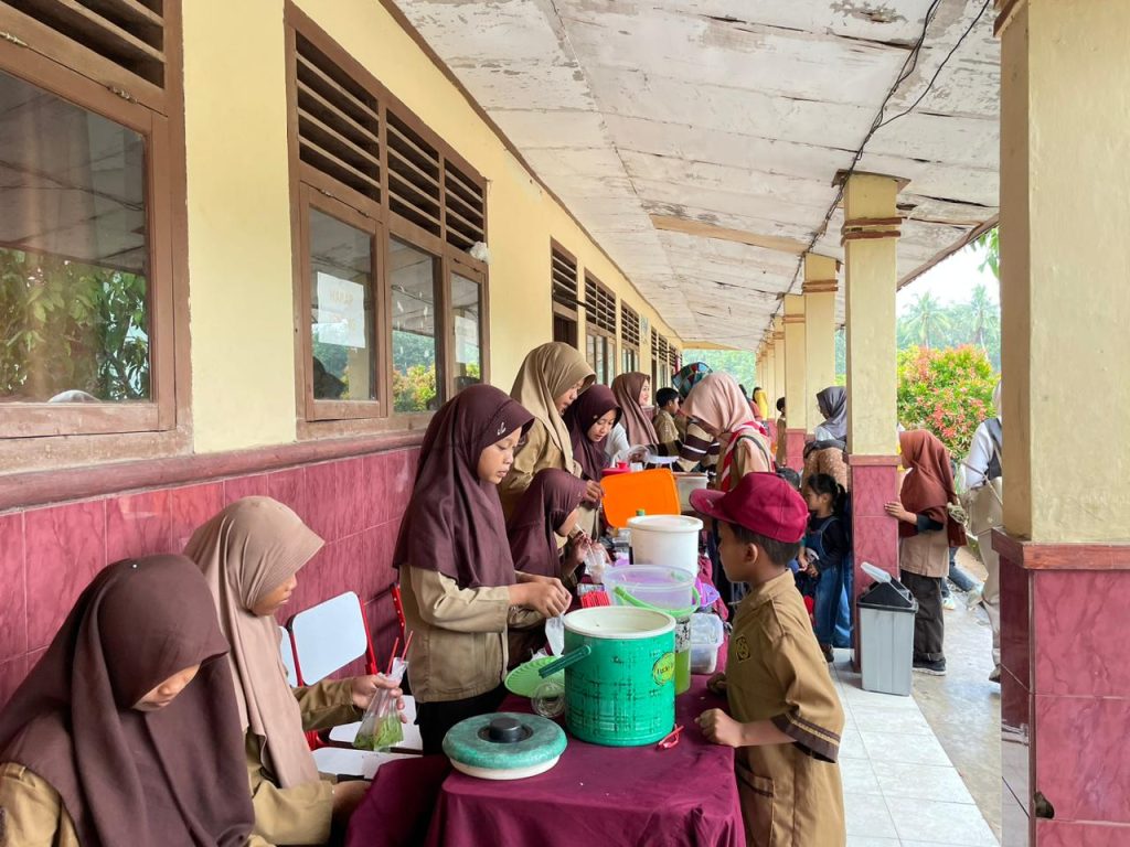 Trimulyo – Kegiatan Market Day yang dinantikan akhirnya digelar di halaman SD 1 Trimulyo pada Minggu (31/1/2026) pagi hingga siang hari. Acara ini merupakan implementasi langsung dari materi sosialisasi kewirausahaan yang telah diberikan sebelumnya oleh mahasiswa Kuliah Kerja Nyata (KKN) Universitas Lampung (Unila) Desa Trimulyo kepada siswa-siswi sekolah dasar setempat.