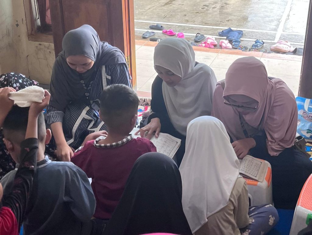 Kegiatan dimulai pada pukul 16.00 WIB dan berlangsung hingga pukul 17.00 WIB. Selama kegiatan berlangsung, mahasiswa KKN membantu membimbing anak-anak dalam membaca dan melafalkan huruf-huruf hijaiyah, serta mendampingi proses belajar mengaji sesuai dengan kemampuan masing-masing murid.