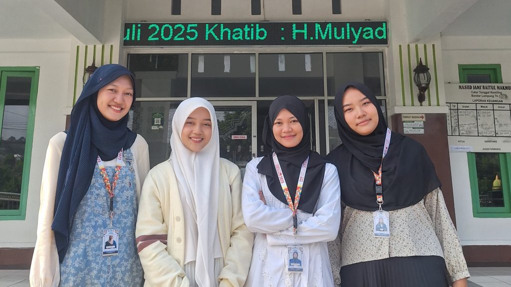 Bandar Lampung, 21 Juli 2025 – Mahasiswa KKN Universitas Lampung mengikuti kegiatan pengajian di Masjid Jami’ Baitul Makmur, Kelurahan Sumberrejo Sejahtera. Kegiatan ini dimulai pukul 13.00 WIB dan dihadiri oleh ibu-ibu jamaah setempat serta mahasiswa KKN dari UIN Raden Intan Lampung.