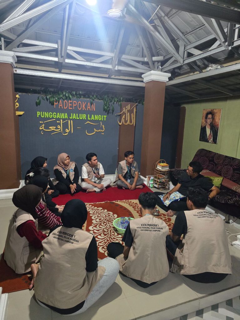 Kunjungan tersebut berlangsung dalam suasana yang hangat dan penuh kekeluargaan. Dalam pertemuan ini, mahasiswa menyampaikan maksud dan tujuan pelaksanaan KKN di Desa Hanura serta kesiapan kelompok dalam mendukung kegiatan dan program desa selama masa pengabdian. Kepala Desa Hanura menyambut baik kedatangan mahasiswa dan memberikan arahan singkat terkait kondisi desa serta harapan terhadap kontribusi mahasiswa KKN.