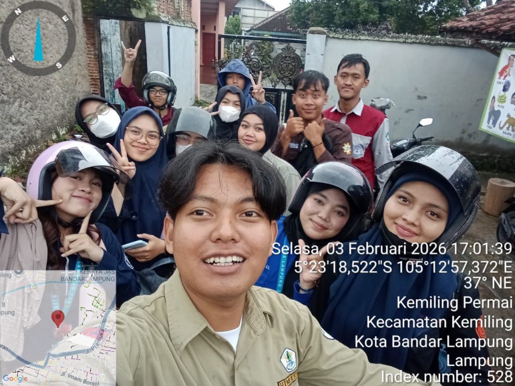Bandar Lampung 03 Februari 2026 – Mahasiswa Kuliah Kerja Nyata (KKN) Universitas Lampung Periode I Tahun 2026 melaksanakan kegiatan monitoring dan evaluasi bersama Dosen Pembimbing Lapangan (DPL) serta pemasangan kaca cembung di wilayah Kelurahan Kemiling Raya, Kecamatan Kemiling, Kota Bandar Lampung, pada Selasa, 03 Februari 2026.
