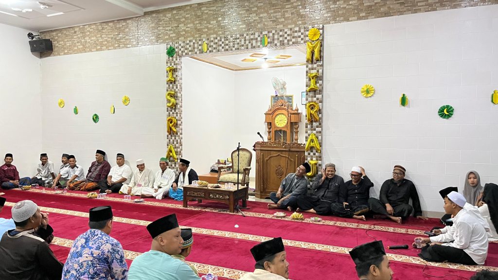 Rajabasa Jaya — Dalam rangka kegiatan Pra-KKN, mahasiswa Kuliah Kerja Nyata (KKN) Universitas Lampung turut berpartisipasi dalam acara peringatan Isra Mi’raj Nabi Muhammad SAW yang diselenggarakan di Masjid Jami’ Abdurrahman, Lingkungan 2, Kelurahan Rajabasa Jaya, bersama warga setempat dan jajaran pemerintah kelurahan.