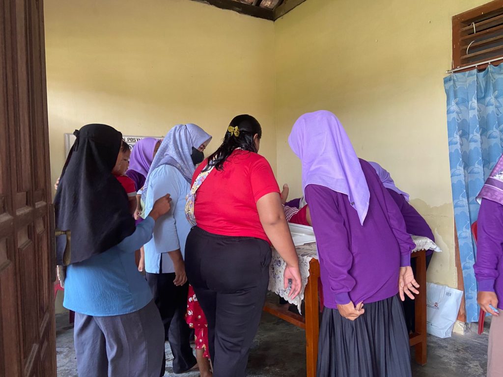 Rangkaian kegiatan Posyandu diawali dengan pelayanan kesehatan dasar, meliputi pendaftaran peserta, pemantauan kondisi kesehatan ibu dan balita, serta pelayanan kesehatan bagi lansia. Kegiatan ini dilaksanakan dengan pendampingan kader Posyandu dan dukungan mahasiswa Kuliah Kerja Nyata (KKN) yang turut membantu dalam kelancaran pelaksanaan kegiatan serta interaksi dengan peserta.