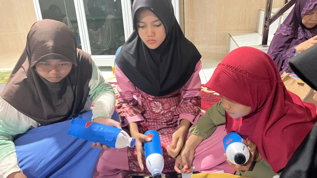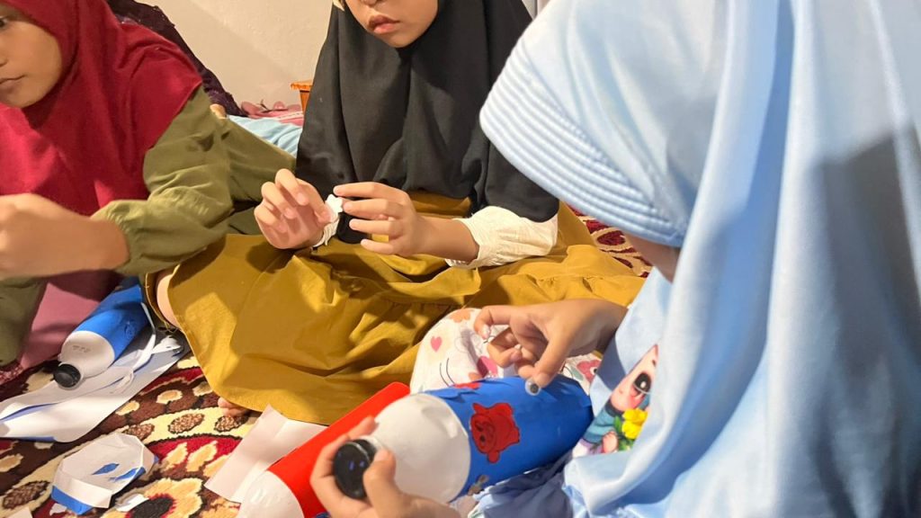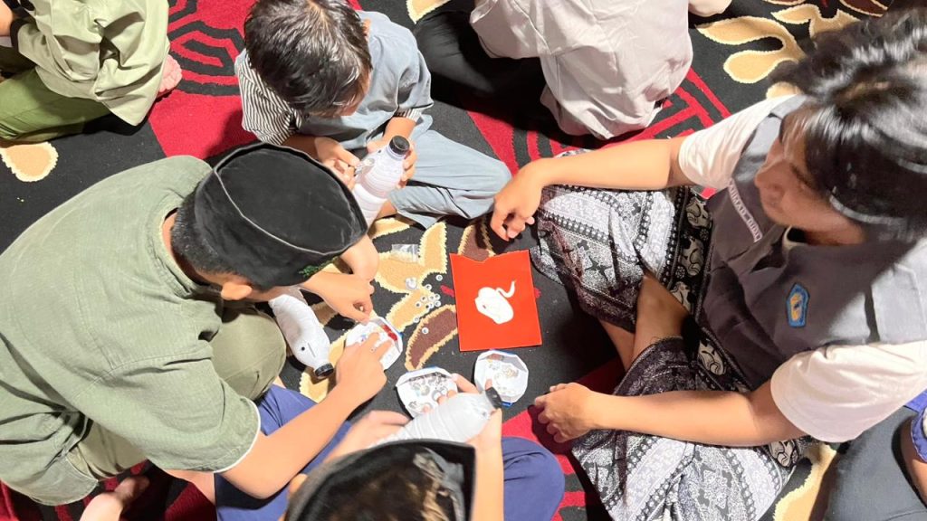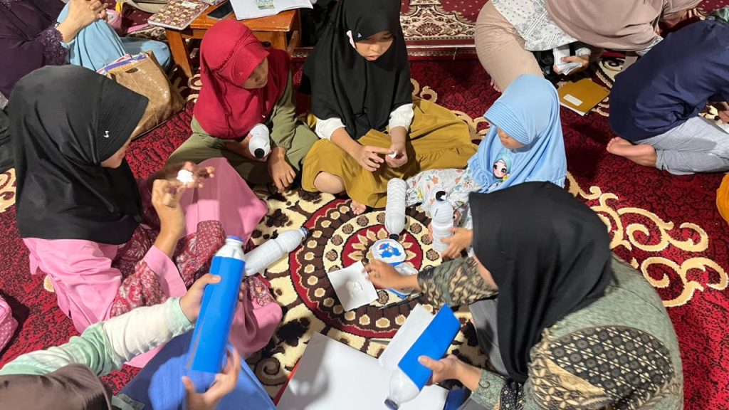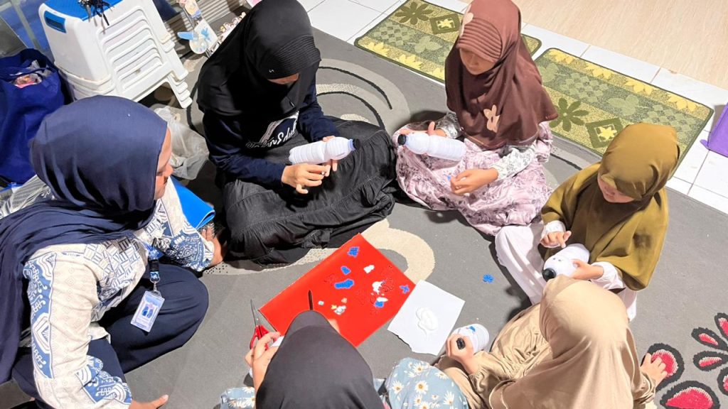 Pada sore hari pukul 16.00 WIB, kegiatan dilanjutkan dengan kelas kreativitas di TPA Al Muawannah. Dalam kegiatan ini, anak-anak diajak untuk membuat tabungan dari botol bekas sebagai bentuk edukasi menabung sejak dini sekaligus pemanfaatan barang bekas. Anak-anak diberikan kebebasan untuk berkreasi menghias botol tabungan menggunakan berbagai bahan hiasan yang telah disiapkan. Kegiatan berlangsung dengan penuh antusiasme dan keceriaan, serta mampu menumbuhkan kreativitas, kepedulian terhadap lingkungan, dan kebiasaan menabung sejak dini.