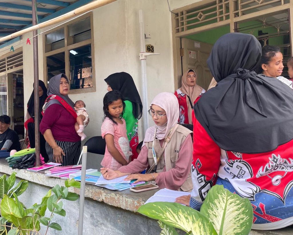 Dalam kegiatan tersebut, mahasiswa KKN turut membantu kader posyandu dan ibu-ibu yang hadir dalam proses penimbangan berat badan serta pengukuran tinggi badan anak. Keterlibatan mahasiswa difokuskan pada membantu kelancaran kegiatan pelayanan, mulai dari pendataan sederhana hingga pendampingan anak selama proses pengukuran berlangsung.