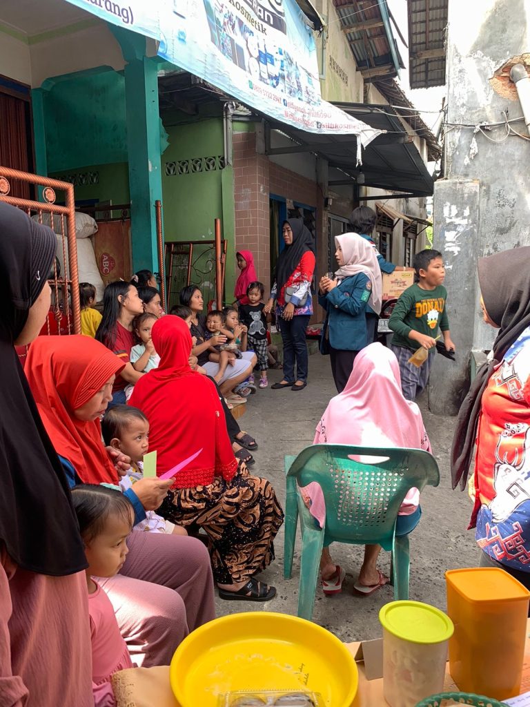Selain pemeriksaan fisik, mahasiswa KKN bersama kader Posyandu juga mengadakan sosialisasi pencegahan stunting kepada para ibu yang memiliki balita. Materi yang disampaikan meliputi pentingnya asupan gizi seimbang, pola makan sehat, pemberian ASI eksklusif, serta pemantauan pertumbuhan anak secara berkala. Sosialisasi ini diharapkan dapat meningkatkan pengetahuan dan kesadaran orang tua akan pentingnya gizi bagi pertumbuhan anak, sehingga risiko stunting dapat ditekan sejak dini.