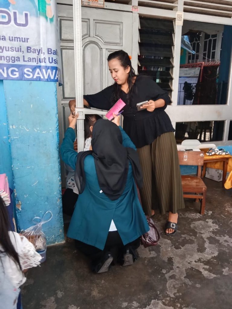 Pemeriksaan rutin ini mencakup pengukuran tinggi badan, berat badan, serta pemantauan tumbuh kembang anak-anak balita. Tidak hanya itu, tim juga melakukan pendataan balita, sekaligus membagikan obat cacing dan vitamin sebagai upaya menjaga kesehatan dan daya tahan tubuh mereka.