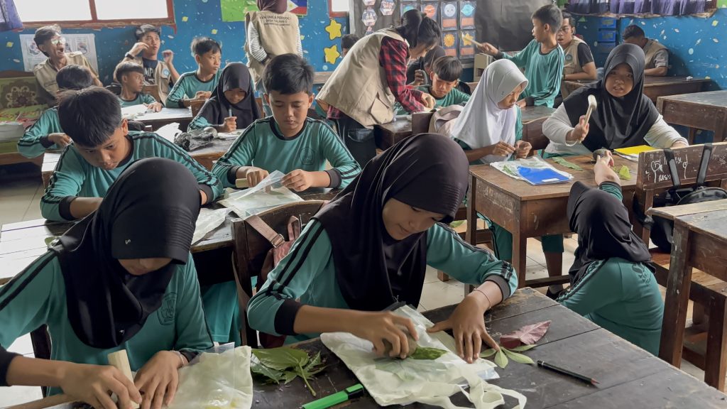 Dalam pelaksanaannya, mahasiswa KKN UNILA mendampingi anak-anak secara langsung dalam proses pembuatan eco print, mulai dari penyusunan daun pada kain hingga proses pencetakan pola alami. Anak-anak terlihat sangat antusias dan aktif mengikuti setiap tahapan kegiatan, serta menunjukkan kreativitas melalui hasil karya yang dihasilkan.