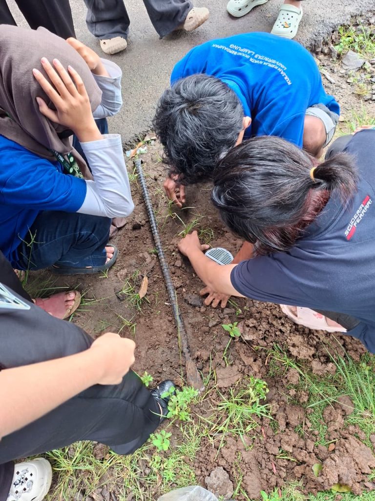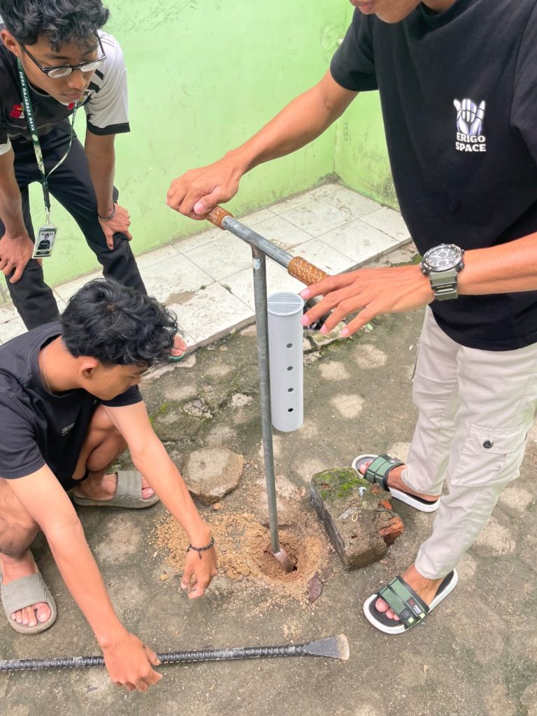 Penentuan lokasi penanaman biopori telah melalui proses survei lapangan serta koordinasi perizinan dengan para RT dan warga setempat. Biopori, atau yang lazim dikenal sebagai lubang resapan silindris, dibuat secara vertikal ke dalam tanah sebagai metode konservasi air yang efektif. Teknologi ini ditujukan untuk mengatasi permasalahan genangan air dengan cara meningkatkan daya resap tanah melalui lubang yang kemudian ditimbun dengan sampah organik guna menghasilkan kompos alami.
