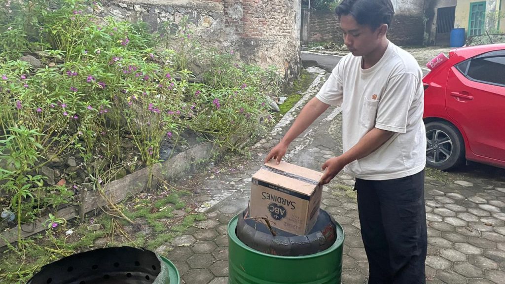 Kegiatan diawali dengan persiapan alat dan bahan yang diperlukan untuk pelaksanaan uji coba tong minim asap. Setelah itu, mahasiswa memberikan penjelasan singkat kepada masyarakat mengenai pengertian, fungsi, serta cara kerja tong minim asap. Penjelasan ini bertujuan agar masyarakat memahami manfaat penggunaan tong tersebut sebagai alternatif pembakaran sampah yang dapat meminimalkan asap dan bau yang ditimbulkan.