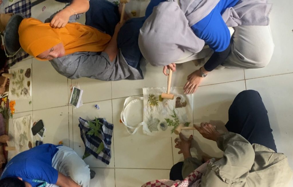 Dalam pelaksanaannya, peserta diberikan pemaparan materi tentang pengenalan ecoprint, jenis-jenis tanaman yang dapat digunakan, serta tahapan proses pembuatan ecoprint. Setelah itu, peserta langsung mempraktikkan proses penyusunan motif, penggulungan kain, hingga proses pengukusan.