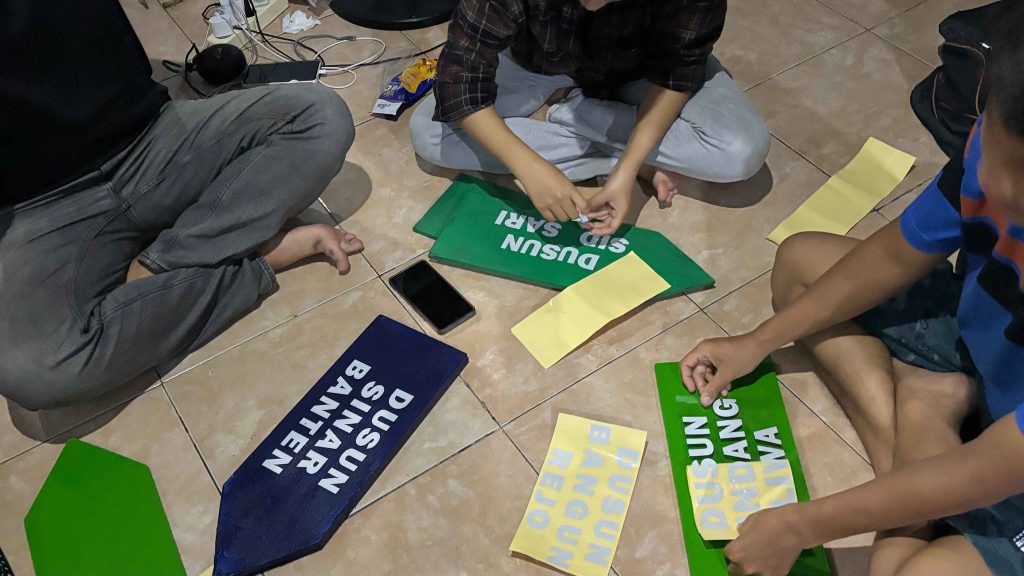 Pada malam harinya, mahasiswa KKN Unila melanjutkan kegiatan dengan proses pembuatan peta administrasi Desa Sidosari serta persiapan plang penunjuk arah dusun. Kegiatan ini diharapkan dapat mendukung tertib administrasi desa serta mempermudah akses dan orientasi wilayah bagi masyarakat maupun pendatang.