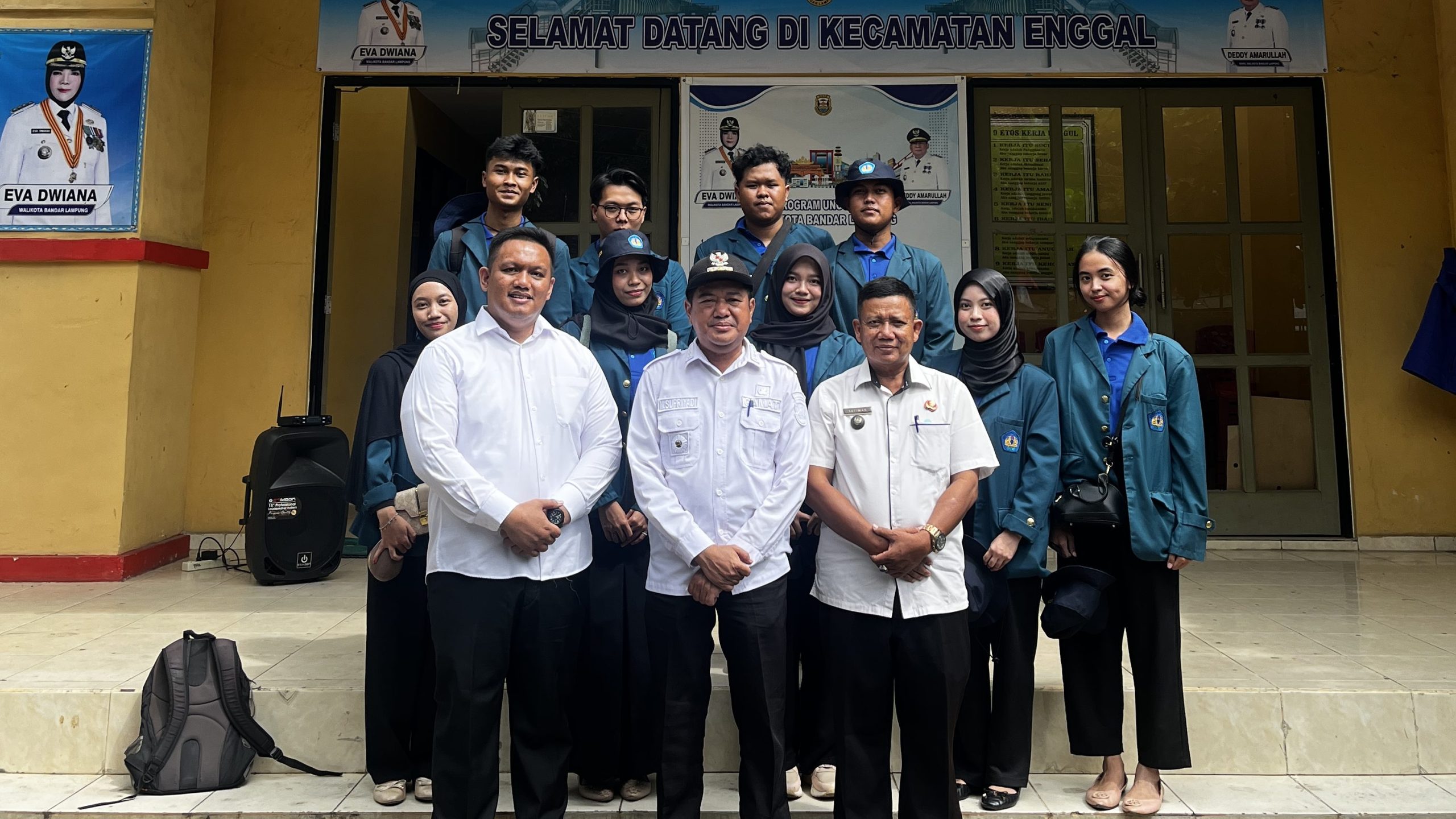 Setelah pelepasan, para mahasiswa yang ditugaskan di Kecamatan Enggal diterima langsung oleh jajaran pemerintah kecamatan. Acara penyambutan dilakukan di halaman Kantor Kecamatan Enggal dengan penuh kehangatan dan antusiasme. Pihak kecamatan menyampaikan harapan agar mahasiswa dapat berkontribusi aktif dalam mendukung program kerja di wilayah tersebut.