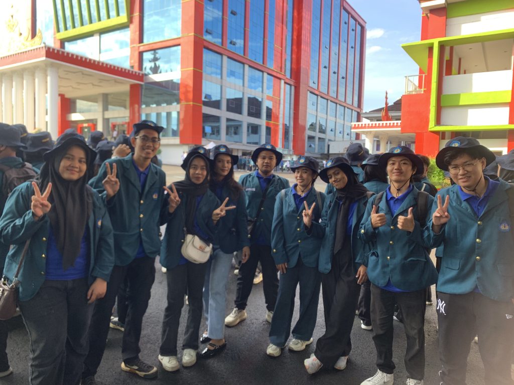 Apel pelepasan tingkat universitas berlangsung secara tertib dan khidmat. Meskipun tidak disertai dengan sambutan resmi, para mahasiswa tampak hadir dengan mengenakan jaket almamater biru tua dan topi rimba bertuliskan “KKN 2025”, seperti tergambar dalam dokumentasi foto. Kehadiran mereka mencerminkan semangat kolektif dan kesiapan untuk terjun langsung ke tengah masyarakat guna mengabdi selama lebih dari satu bulan ke depan.