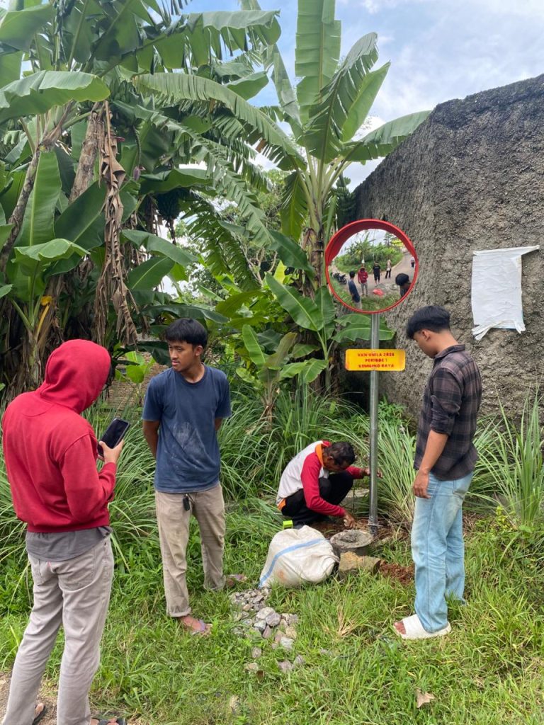 Kegiatan diawali pada pukul 08.00 WIB dengan berkumpulnya seluruh mahasiswa KKN di posko. Mahasiswa kemudian mempersiapkan seluruh peralatan dan kebutuhan yang akan digunakan untuk pemasangan kaca cembung. Setelah seluruh perlengkapan siap, mahasiswa mengunjungi rumah Bapak Edi selaku Ketua RT setempat untuk berkoordinasi sebelum menuju lokasi pemasangan kaca cembung. Proses pemasangan kaca cembung dilaksanakan di titik yang telah ditentukan dengan didampingi dan dibantu langsung oleh Bapak Edi. Kegiatan pemasangan berlangsung dengan lancar dan diakhiri dengan sesi foto bersama sebagai dokumentasi.