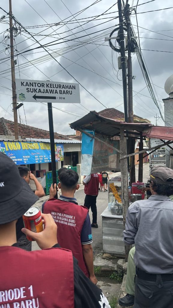 Pada hari Senin, 19 Januari 2026, mahasiswa Kuliah Kerja Nyata (KKN) Universitas Lampung melaksanakan salah satu program kerja di Desa Suka Jawa Baru, yaitu pemasangan papan penunjuk arah menuju kantor kelurahan yang baru. Kegiatan ini dilaksanakan sebagai bentuk kontribusi nyata mahasiswa dalam membantu meningkatkan kemudahan akses informasi bagi masyarakat.