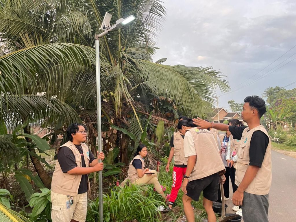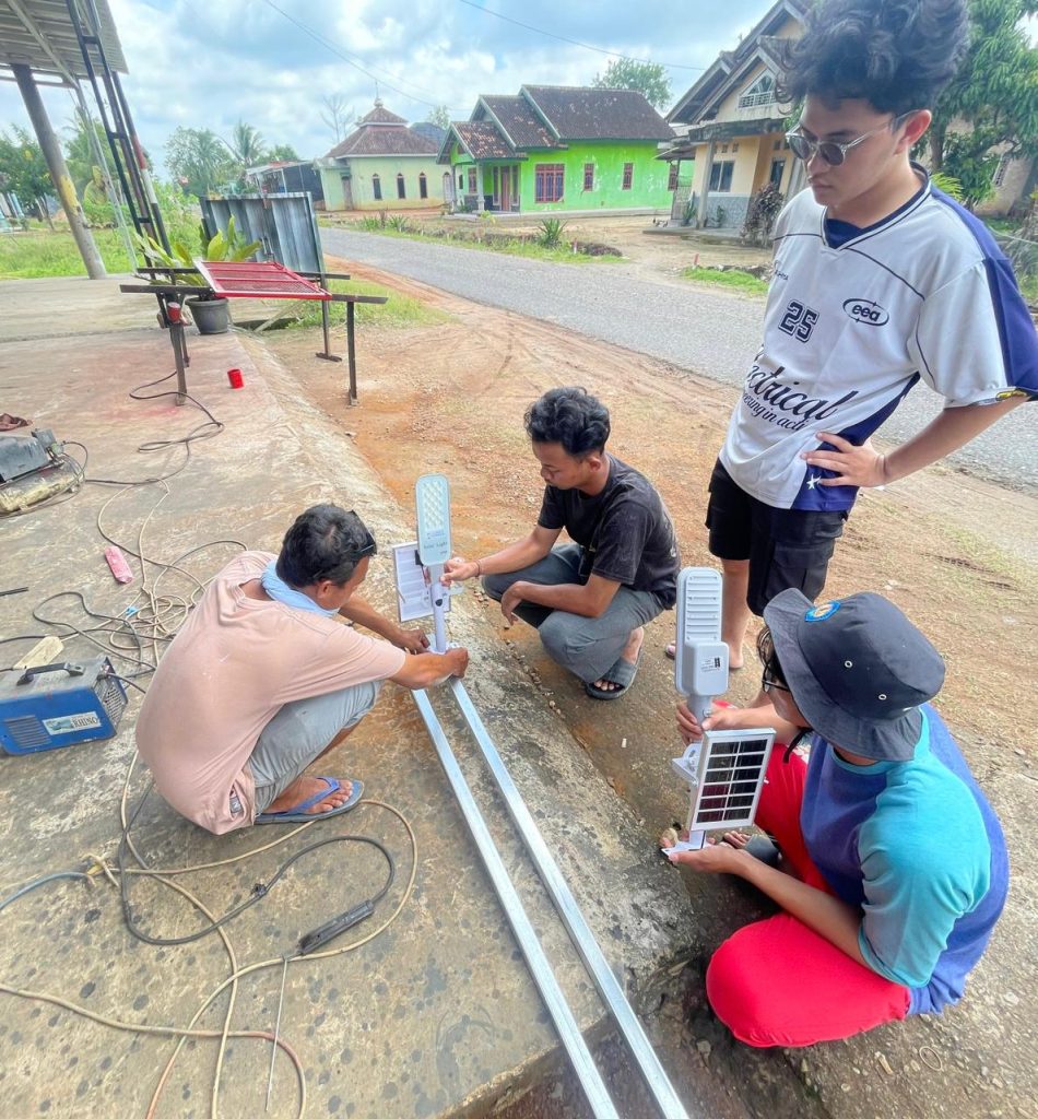 Instalasi Program LENTERA dilaksanakan pada dua titik strategis, yaitu di Dusun Sukamaju B dan Dusun Beringin Jaya. Pemasangan dilakukan pada tiang permanen dengan memperhatikan posisi panel surya agar memperoleh paparan sinar matahari secara optimal dan tidak terhalang oleh bayangan pepohonan atau bangunan di sekitarnya. Proses instalasi dilaksanakan dengan memperhatikan aspek keamanan serta keberlanjutan penggunaan jangka panjang.