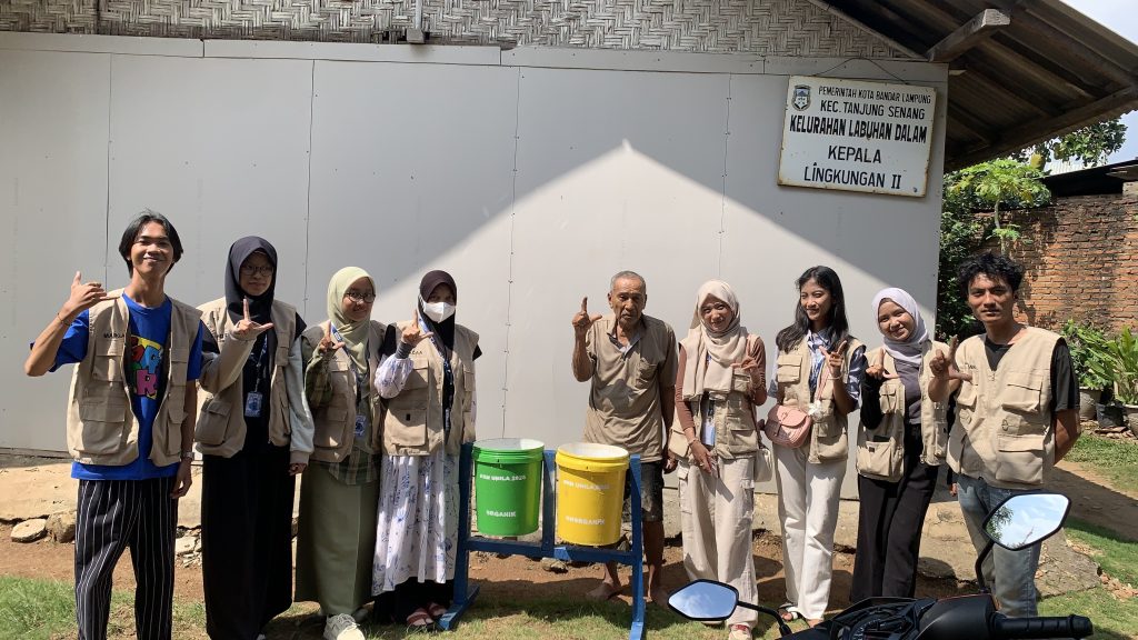 Bandar Lampung, 6 Agustus 2025 – Mahasiswa KKN Unila melaksanakan program kerja pembagian tempat sampah sebanyak tiga pasang yang terdiri dari kotak sampah organik dan anorganik. Titik pertama pembagian dilakukan di Masjid Al-Ikhlas RT 04 LK 2 untuk mendukung kebersihan area masjid dan lingkungan sekitar. Titik kedua diberikan kepada Kepala Lingkungan 1, Bapak Yusuf, yang selanjutnya akan mendiskusikan penempatan kotak sampah tersebut bersama para Ketua RT di wilayahnya agar dapat dimanfaatkan secara optimal oleh warga. Titik ketiga pembagian dilakukan kepada Kepala Lingkungan 2, Bapak Kadi, yang mengarahkan penempatannya di depan Masjid Al-Hidayah, tepat di sebelah Kantor Kelurahan Labuhan Dalam, Lingkungan 2.