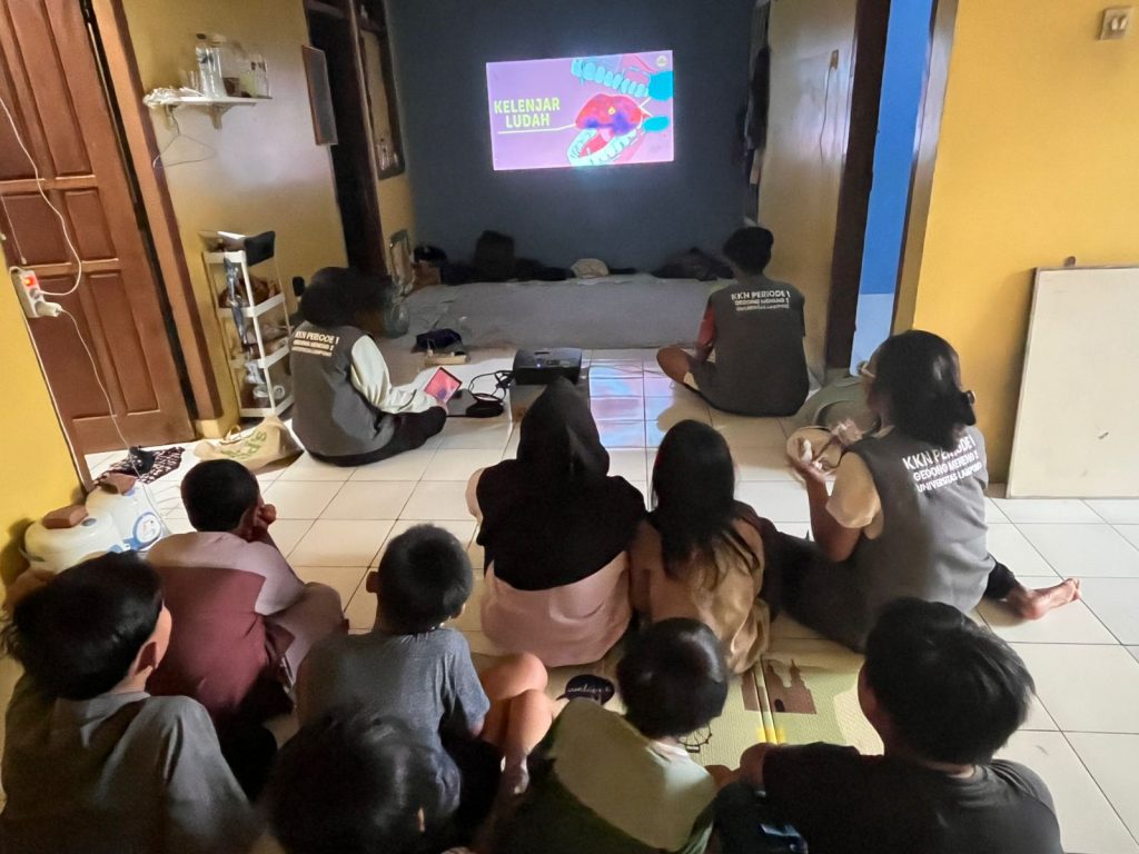 Setelah kegiatan pembersihan lahan TOGA, kegiatan dilanjutkan dengan program kerja bimbingan belajar (bimbel) untuk anak-anak. Pada kegiatan bimbel kali ini, mahasiswa mengajak anak-anak untuk menonton film edukasi sebagai media pembelajaran yang menyenangkan. Melalui film edukasi tersebut, anak-anak diharapkan dapat memperoleh pengetahuan baru serta memahami nilai-nilai positif yang disampaikan.