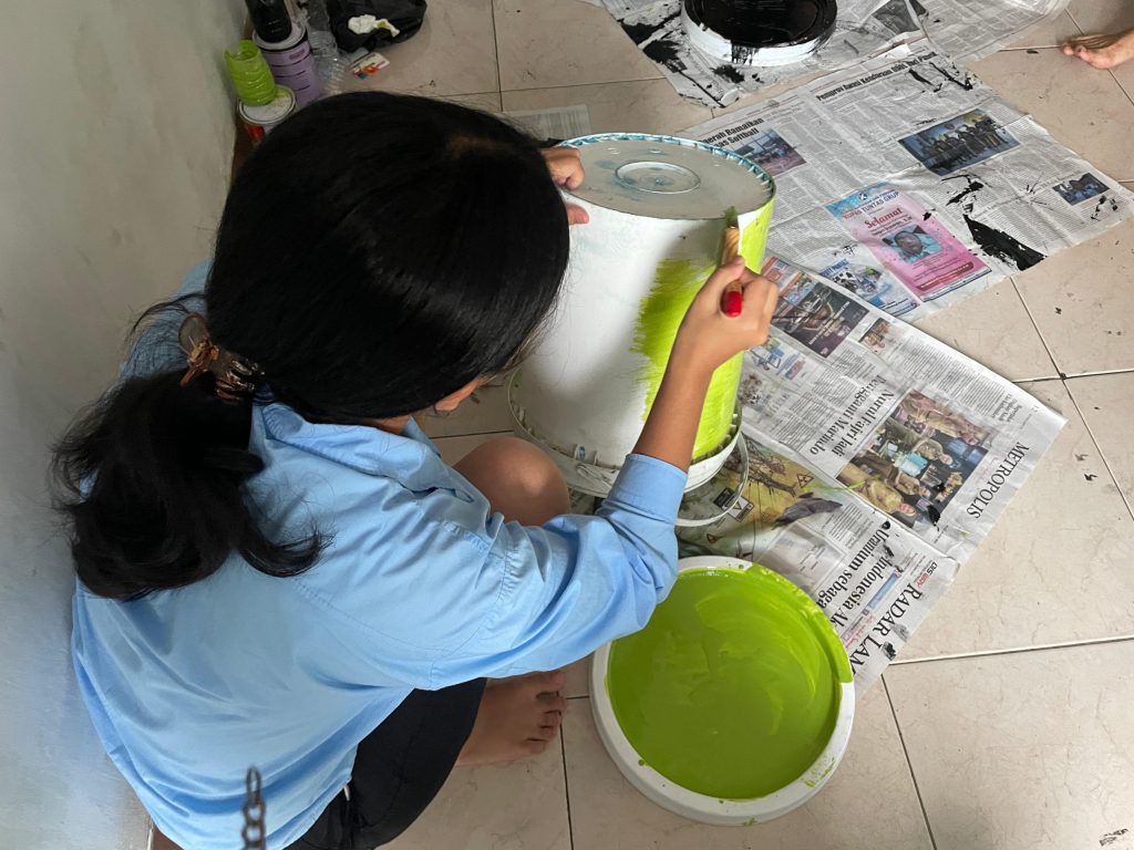 Proses pembuatan dropbox dimulai dengan tahap perencanaan yang melibatkan koordinasi dengan pihak kelurahan dan sekolah setempat. Kami melakukan diskusi dengan para kepala sekolah dan ketua RT untuk mengidentifikasi kebutuhan serta lokasi strategis untuk penempatan dropbox. Setiap dropbox dirancang dengan dua kompartemen terpisah, masing-masing untuk sampah organik (seperti sisa makanan) dan anorganik (seperti plastik dan kertas), dengan label yang jelas untuk memudahkan pemilahan.