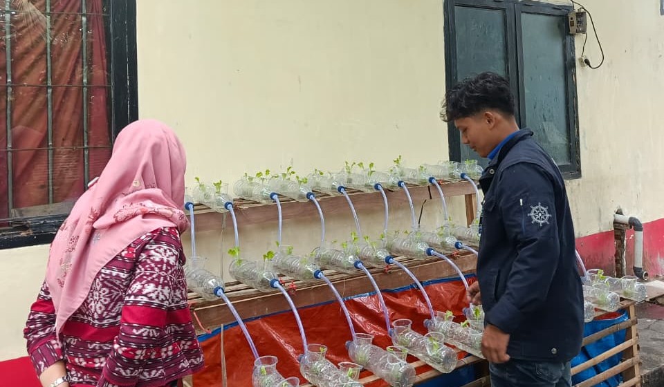 Dalam pelaksanaannya, mahasiswa melakukan pengecekan kondisi ikan dan tanaman, pembersihan media tanam, serta pengontrolan sirkulasi air dan nutrisi. Kegiatan ini juga disertai dengan pengamatan pertumbuhan tanaman dan kesehatan ikan guna mencegah terjadinya gangguan yang dapat memengaruhi hasil aquaponik. Dengan perawatan yang tepat, sistem aquaponik diharapkan mampu menghasilkan tanaman yang sehat serta ikan yang berkualitas.