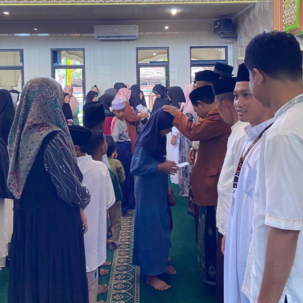 Sebanyak puluhan warga turut hadir, bersama anak-anak yatim yang menerima santunan sebagai bentuk perhatian dan cinta kasih dari komunitas sekitar.
