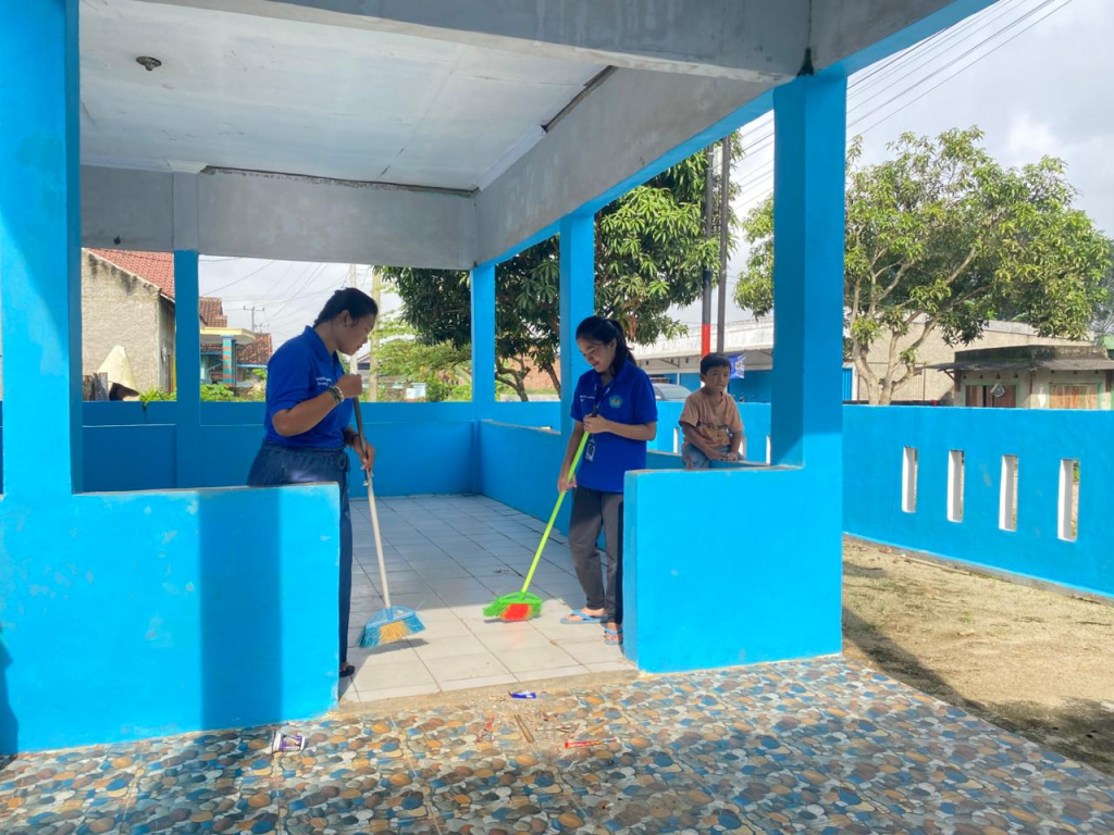 Setelah kegiatan senam selesai, kegiatan dilanjutkan dengan gotong royong membersihkan Balai Desa Gedung Harapan. Mahasiswa KKN Kelompok 2 bersama masyarakat bahu-membahu membersihkan lingkungan balai desa sebagai bentuk kepedulian terhadap kebersihan fasilitas umum yang sering digunakan dalam berbagai kegiatan desa.