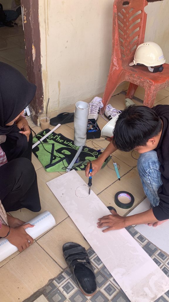 Proses lapangan tidak hanya melibatkan pemasangan teknis, tetapi juga edukasi singkat kepada warga sekitar tentang cara kerja sistem alarm banjir berbasis IoT yang kami kembangkan, termasuk pemahaman tentang arti indikator suara dan visual alarm saat threshold ketinggian air tercapai. Selain itu, pada kesempatan ini mahasiswa juga mendokumentasikan langkah-langkah pemasangan agar menjadi bahan evaluasi dan referensi dalam penyusunan laporan akhir program kerja. Seluruh rangkaian kegiatan hari ini berjalan dengan antusiasme yang tinggi dari tim dan masyarakat setempat, sehingga diharapkan keberadaan sistem alarm ini dapat memberikan kontribusi nyata dalam mitigasi risiko bencana banjir dan meningkatkan kesiapsiagaan masyarakat terhadap bahaya banjir di wilayah binaan.