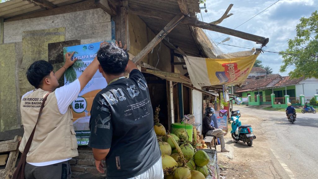Kegiatan pengembangan UMKM merupakan salah satu program kerja mahasiswa Kuliah Kerja Nyata (KKN) sebagai upaya mendukung peningkatan perekonomian masyarakat desa. Dalam kegiatan ini, mahasiswa KKN melakukan pendampingan terhadap pelaku UMKM dengan memberikan banner usaha sebagai media promosi.