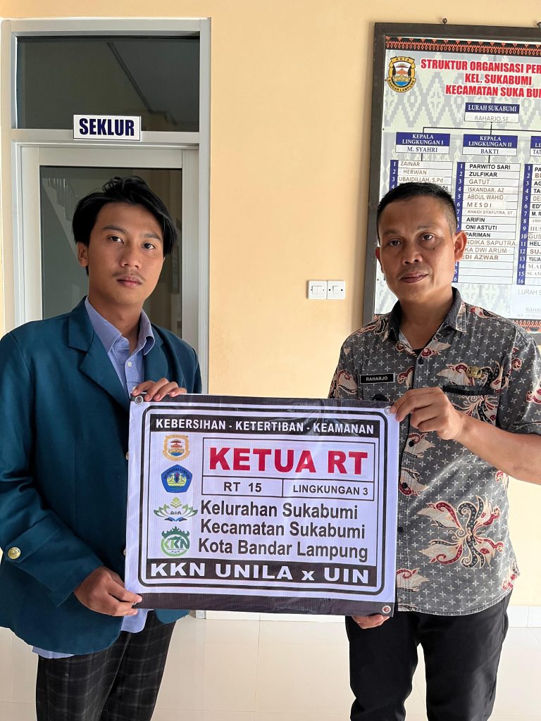Kegiatan penyerahan dilaksanakan di kantor Kelurahan Sukabumi, diwakili oleh tiga mahasiswa KKN Unila, dan diterima langsung oleh Lurah Kelurahan Sukabumi. Dalam kesempatan tersebut, pihak kelurahan menyampaikan apresiasi atas hasil kerja mahasiswa KKN yang dinilai bermanfaat dan dapat digunakan secara berkelanjutan.