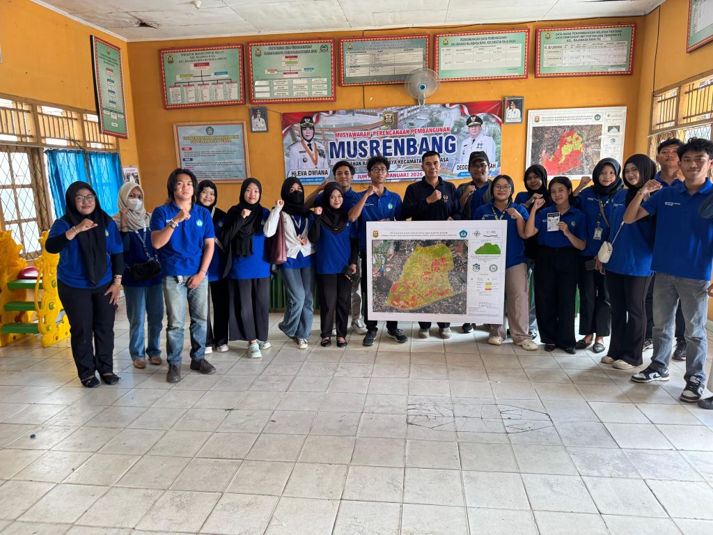 Mahasiswa KKN Universitas Lampung (Unila) Periode 1 Tahun 2026 Kelompok 1 Kelurahan Rajabasa Raya melaksanakan agenda penyerahan Program Kerja RADAR (Rancangan Data Area Rawan) pada Sabru, 7 Februari 2026. Kegiatan yang berlangsung pukul 13.00 WIB ini bertempat di Aula Kelurahan Rajabasa Raya. Penyerahan peta tersebut menjadi salah satu tonggak penting bagi kelurahan dalam memetakan serta memitigasi risiko bencana banjir di wilayah setempat.
