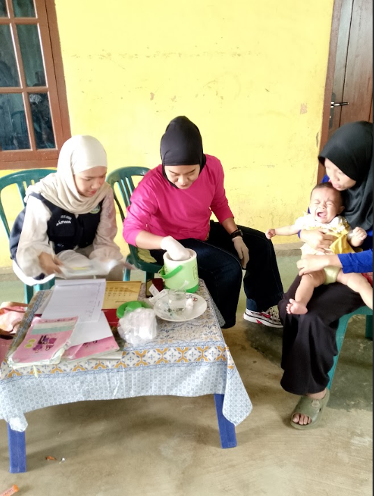 Pada waktu yang bersamaan, mahasiswa juga ikut serta dalam kegiatan posyandu, membantu proses pelayanan kesehatan ibu dan anak. Keterlibatan mahasiswa dalam kegiatan ini diharapkan dapat menambah tenaga pendukung sekaligus memberikan pengalaman langsung terkait pelayanan kesehatan masyarakat di tingkat desa.