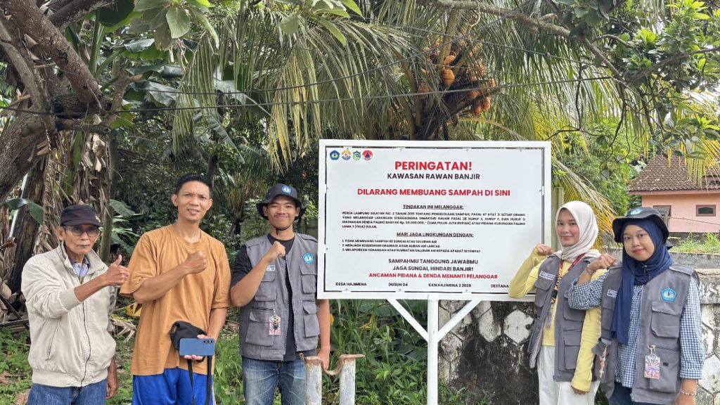 Lampung Selatan, 1 Februari 2026 — Sebagai langkah preventif menghadapi ancaman luapan air, kelompok KKN Hajimena 2 melakukan pemasangan plang edukasi larangan membuang sampah di Dusun 4 Bataranila, Desa Hajimena. Pemasangan ini difokuskan pada dua titik strategis yang diidentifikasi sebagai area rawan banjir, guna memberikan peringatan visual bagi masyarakat akan pentingnya menjaga kebersihan aliran sungai.