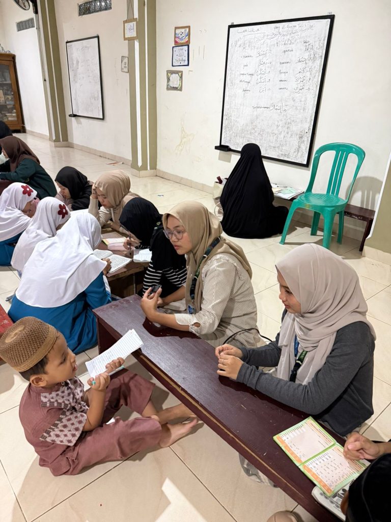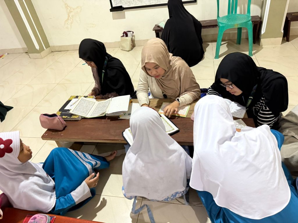 Dalam pelaksanaannya, mahasiswa KKN berperan mendampingi anak-anak dalam melanjutkan bacaan sesuai dengan progres masing-masing. Bagi anak-anak yang telah mencapai tingkatan Al-Qur’an, mahasiswa menyimak kelancaran bacaan pada surat yang sedang dipelajari. Sementara itu, bagi anak-anak yang masih berada di tingkat Juz Amma maupun Iqro, pendampingan dilakukan guna memastikan ketepatan bacaan sesuai dengan tahapan pembelajaran yang telah ditentukan.