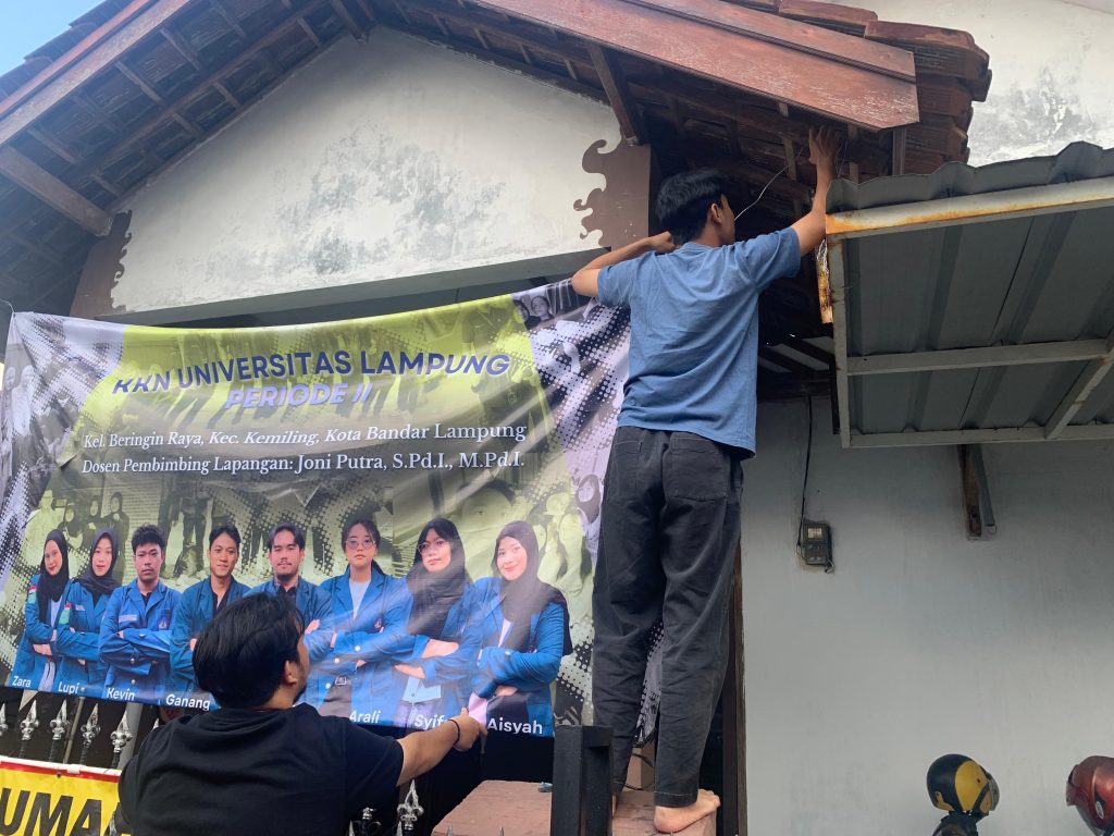 Pada Sabtu, 19 Juli 2025, mahasiswa KKN UNILA di Beringin Raya melakukan pemasangan banner di posko sebagai tanda bahwa tempat tersebut terdapat mahasiswa UNILA. Hal ini juga bertujuan supaya masyarakat Kelurahan Beringin Raya mengetahui di mana tempat mahasiswa KKN UNILA beristirahat dan melakukan kegiatan selain di kantor kelurahan.