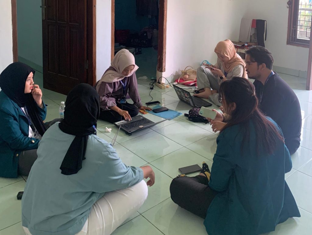Setelah pemasangan banner, kegiatan dilanjutkan dengan diskusi internal guna membahas dan mematangkan rencana program kerja yang akan dijalankan selama masa pengabdian di tengah masyarakat.