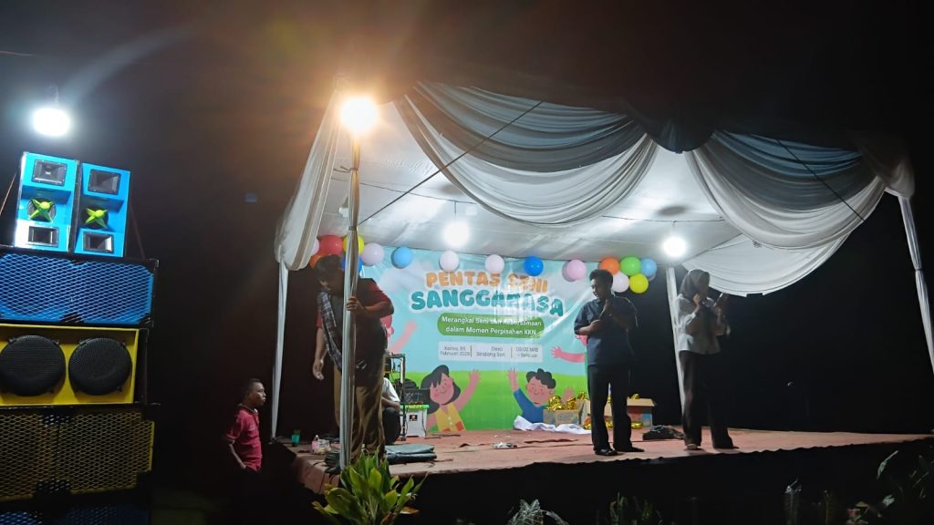 Sindang Sari, 4 Februari 2026 — Kelompok 1 dan Kelompok 2 Kuliah Kerja Nyata (KKN) Universitas Lampung Desa Sindang Sari melaksanakan persiapan intensif untuk program kerja kolaborasi berupa Pentas Seni “Sanggarasa”. Kegiatan ini direncanakan sebagai wadah penampilan peserta didik dari jenjang PAUD, TK, SD, hingga SMP yang ada di Desa Sindang Sari, sekaligus menjadi acara perpisahan KKN Universitas Lampung bersama masyarakat desa.