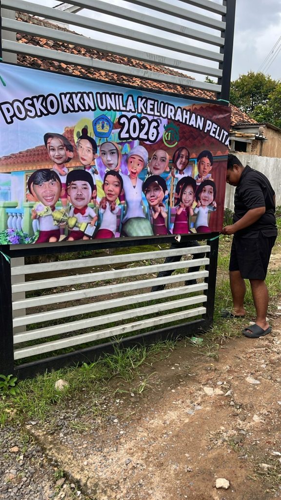 Bandar Lampung, 10 Januari 2026 – Kegiatan ini difokuskan pada tahap persiapan program kerja yang akan dilaksanakan di Kelurahan Pelita sebagai bentuk komitmen awal dalam mendukung pembangunan sosial dan edukasi masyarakat. Tim melakukan pemasangan banner posko, Program kerja yang dipersiapkan meliputi sosialisasi pencegahan stunting sebagai upaya peningkatan kesadaran gizi keluarga, sosialisasi bahaya pinjaman online ilegal dan penggunaan gadget secara bijak, serta pemasangan denah wilayah untuk memudahkan akses dan pemahaman lingkungan kelurahan.